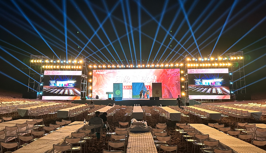 梵蒂詩敦煌系列新品發(fā)布活動沙漠場地燈光音響調(diào)試現(xiàn)場